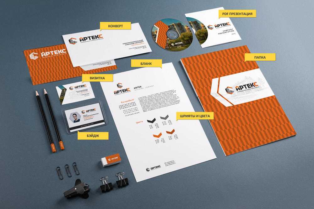 - Создание концепции. Маркетологи и дизайнеры формируют несколько решений корпоративного стиля с учетом пожеланий клиента и требований ТЗ. Концепция позволяет быстро продемонстрировать основные наработки: шрифты, логотипы, исполнение на визитках и т.д. Если заказчик согласовывает предложенный ему вариант, то наступает следующий этап.