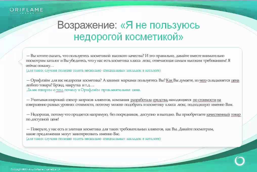 Потребности выявляют с помощью вопросов, обязательно отслеживая реакцию собеседника. Используются открытые, закрытые и альтернативные вопросы. Открытые позволяют получить развернутый ответ: «Какую модель предпочитаете?», «Почему отказались от предыдущего образца?». Закрытые предполагают ответ «да» или «нет», но их не рекомендуют использовать в начале общения – это может вызвать раздражение. К альтернативным обращаются, когда предполагается выбор из одного или более вариантов. Например, «нужна гарантия на год или больше». После получения ответов переходят к презентации продукта, используя заранее подготовленные сценарии (с учетом потребностей клиента).
