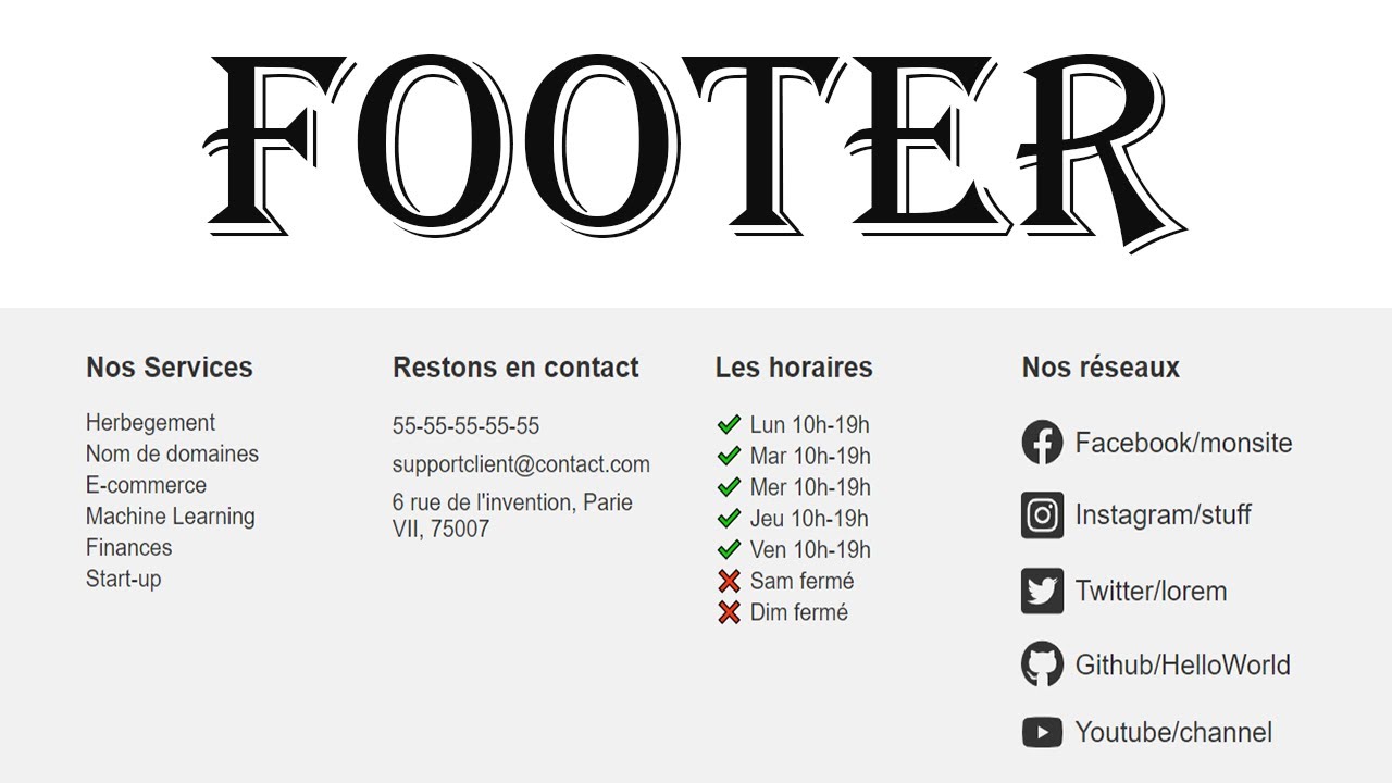 С идеальным фрагментом вы получите обогащающий, увлекательный и оригинальный нижний колонтитул. Таким образом, вы можете работать с HTML, CSS или Bootstrap. Если посетитель доходит до конца страницы, ему нужна дополнительная информация. Ваша цель — сохранить его на своем сайте или побудить его отреагировать. Вот почему, помимо эстетики, ваш нижний колонтитул должен быть структурирован. Предложите меню, которые позволят вам поддерживать связь с вашими посетителями, чтобы успешно разработать нижний колонтитул.