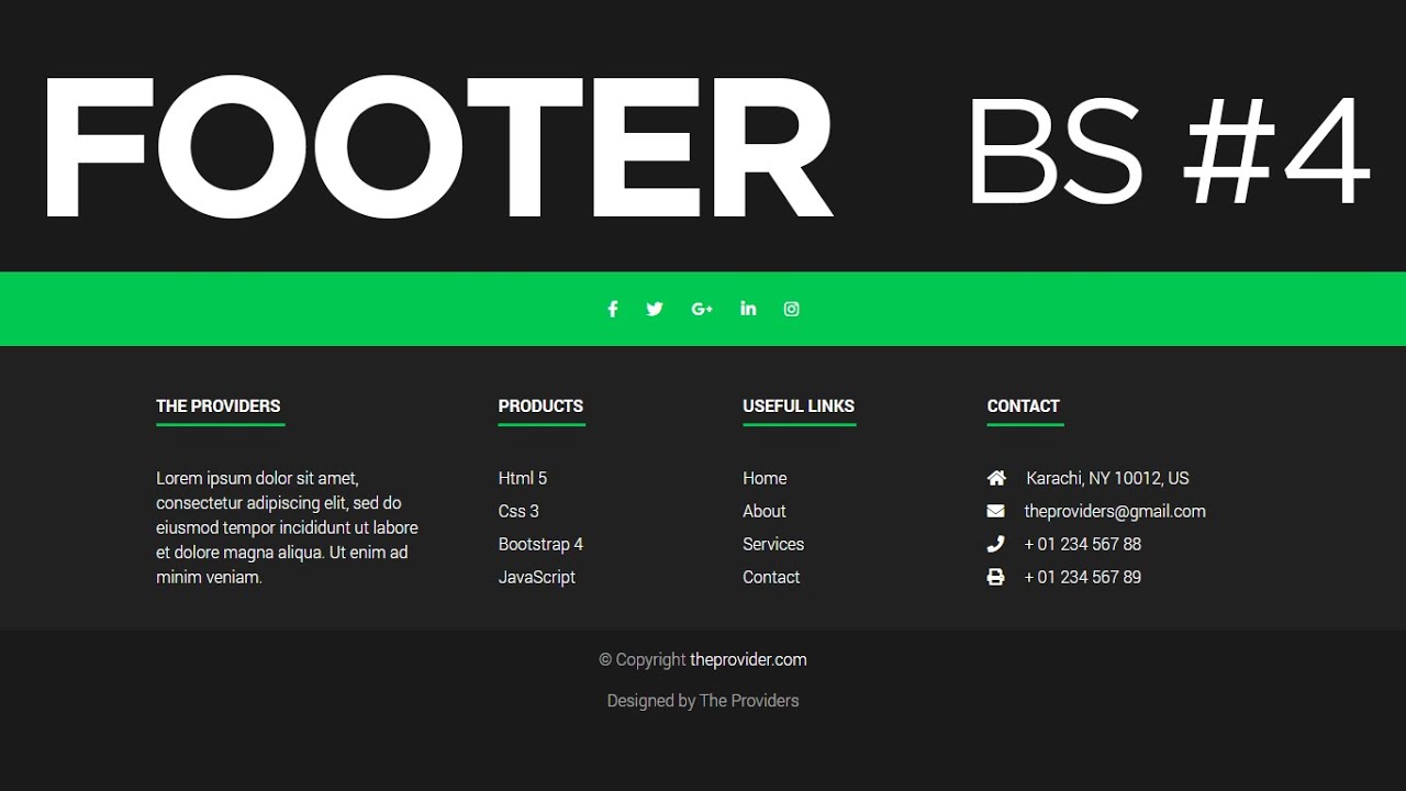Вы можете создать этот нижний колонтитул с помощью Bootstrap 4. Это даст вам стильный нижний колонтитул, который привлечет много посетителей.