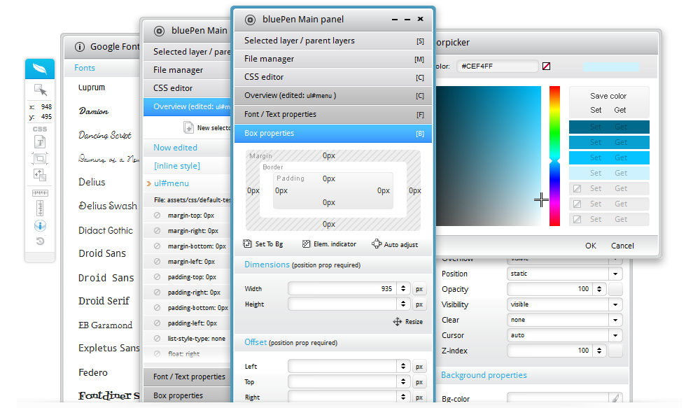 Π‘ΡΠ°Π½Π΄Π°ΡΡΠ½ΡΠΉ CSS ΡΠ΅Π΄Π°ΠΊΡΠΎΡ, ΠΊΠΎΡΠΎΡΡΠΉ ΠΏΠΎΠ·Π²ΠΎΠ»ΡΠ΅Ρ ΡΡΡΠ°Π½ΠΎΠ²ΠΈΡΡ font, color, margin, border ΠΈ Π΄ΡΡΠ³ΠΈΠ΅ ΡΠ²ΠΎΠΉΡΡΠ²Π°.