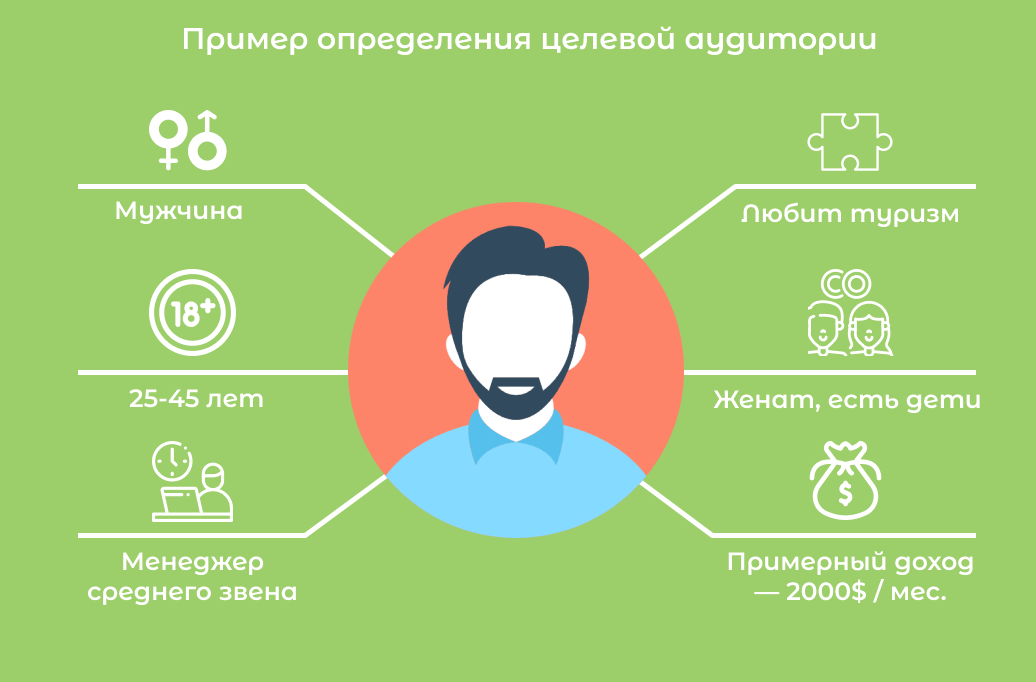 Как составить портрет целевой аудитории? Чтобы составить точный образ потребителя, нужно знать: его возраст, пол, образование, место работы, размер и источник доходов, желания и проблемы.