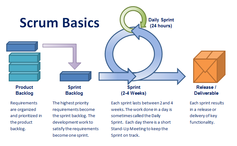 При использовании scrum-подхода сначала проводится собрание по планированию спринта, где команды определяют, что они могут сделать в течение спринта и как будет выполняться эта работа.