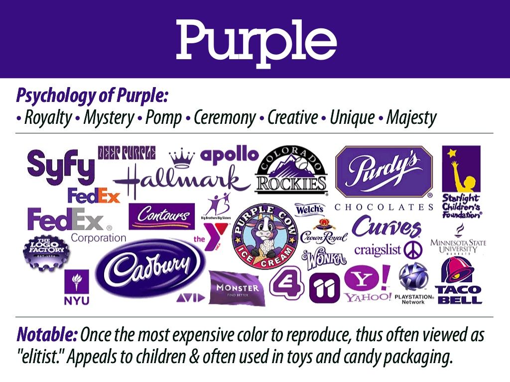 - Фиолетовый: Фиолетовый считается цветом успеха, роскоши, храбрости и богатства. Кроме того, он ассоциируется с мистикой и магией. Он олицетворяет баланс между духовным и физическим. Фиолетовые логотипы часто встречаются у брендов, которые специализируются на предметах роскоши, косметике и красоте, а также образовательных учреждений.