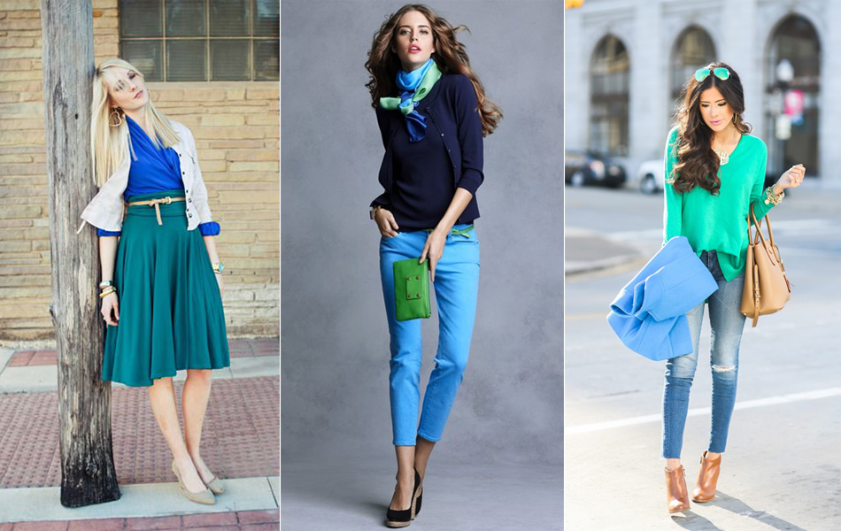 Сочетание сине-зеленого цвета в одежде