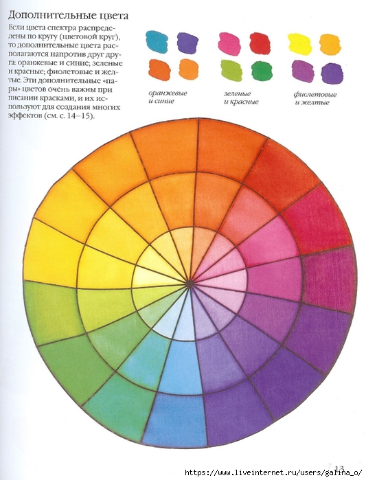 От светлоты, насыщенности комплементарных цветов, их расположения зависит характер цветовой гаммы.
