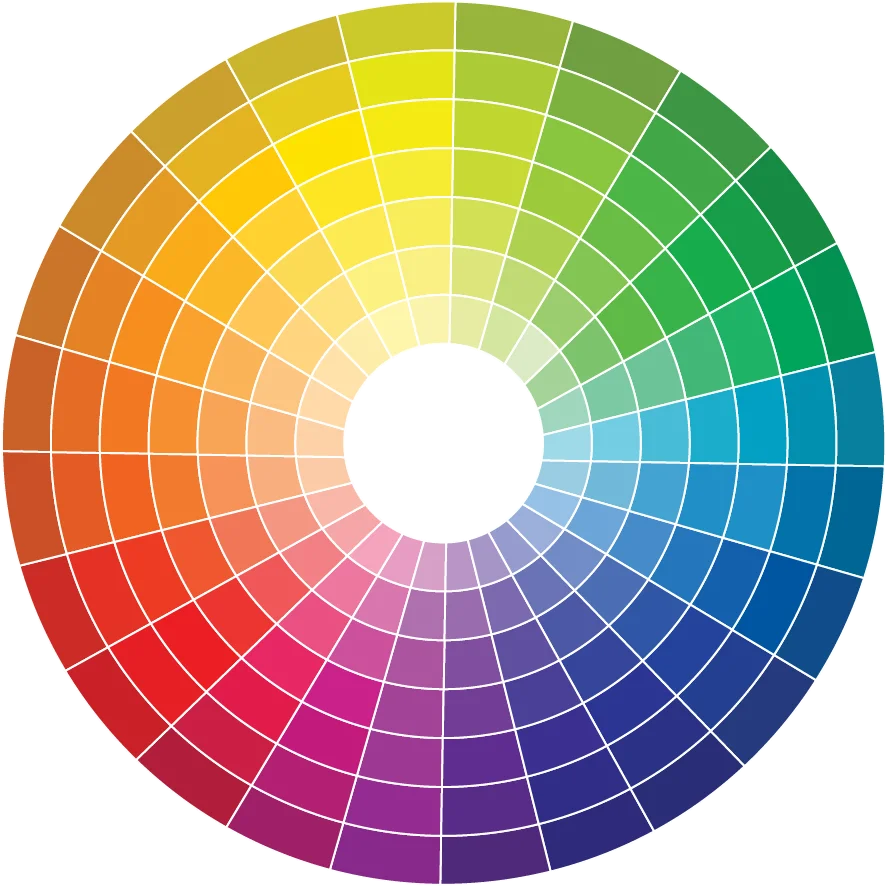 Как и в случае с серыми, вам потребуется на выбор несколько (5-10) более светлых и более темных оттенков.