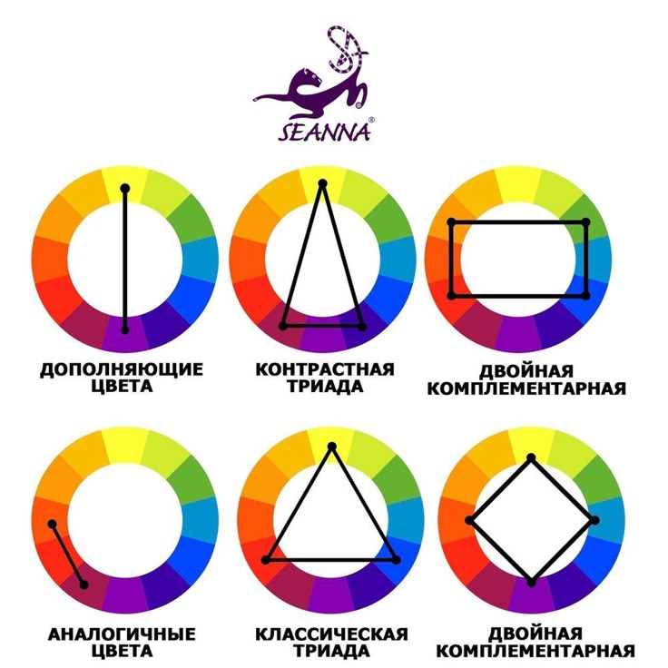 Согласно теории цвета, гармоничные цветовые сочетания получаются