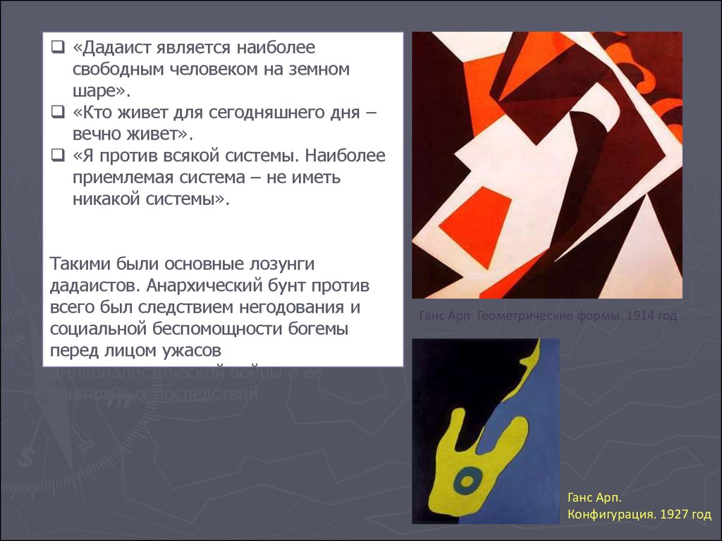 суть дадаизма, история развития в живописи, развитие. Знаменитые художники-дадаисты Ханс Арп, Макс Эрнст, Марсель Янко
