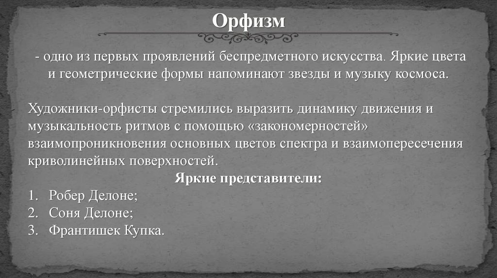 Искусствоведы выделяют три ветви этого художественного направления: