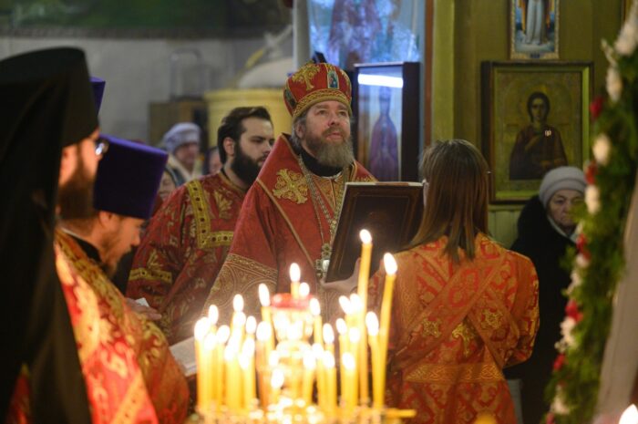 Иже во всем мире мученик Твоих, яко багряницею и виссом кровьми Церковь Твоя украсившися, теми вопиет Ти Христе Боже: людем Твоим щедроты Твоя низпосли, мир жительству Твоему даруй, и душам нашим велию милость.