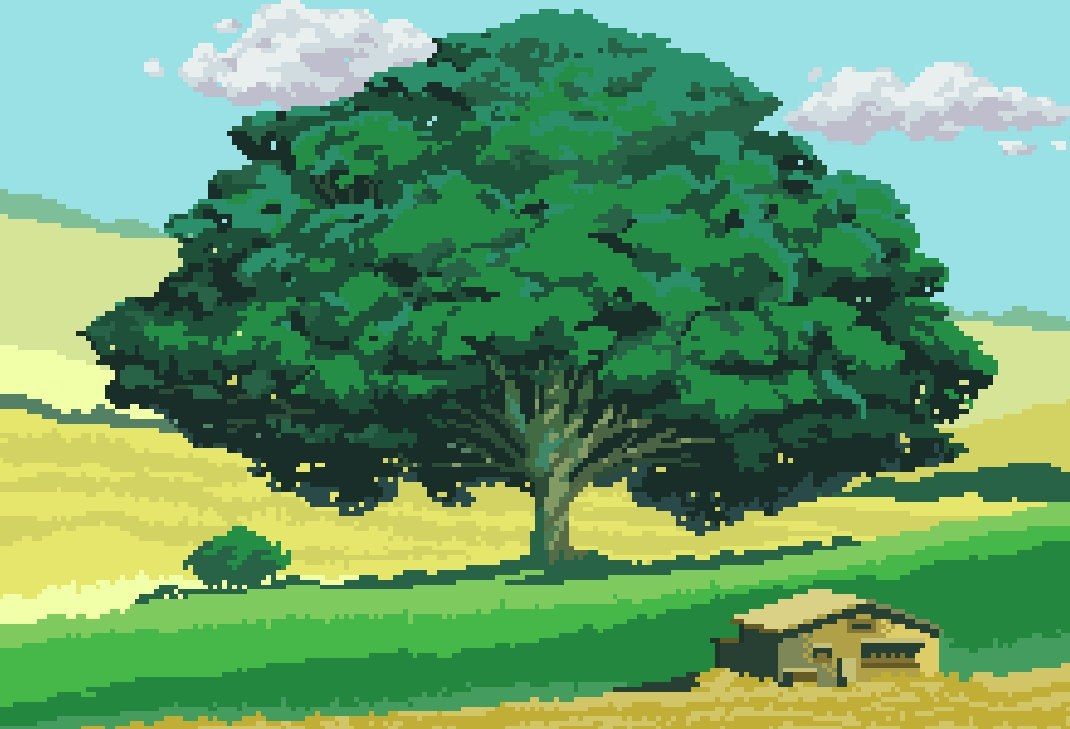pixel-art-szene — пиксель-арт дерево сток-графика, -клипарт, -мультфильмы и -символPixel-Art-Szene