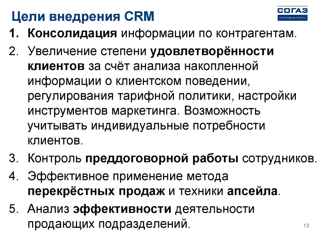 информации о клиентах и истории взаимоотношений с ними, установления и улучшения бизнес-процессов, последующего анализа результатов.
