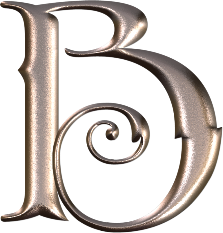 Установите шрифт «Franks» и напишите букву B цветом #e3d1ab размером 570pt.