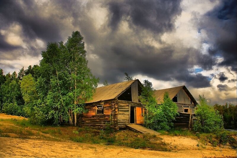 Русская деревня перед грозой
