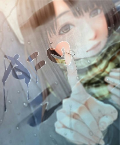 Eine regnerische Tagesszene hinter einem Fenster mit der Silhouette e.