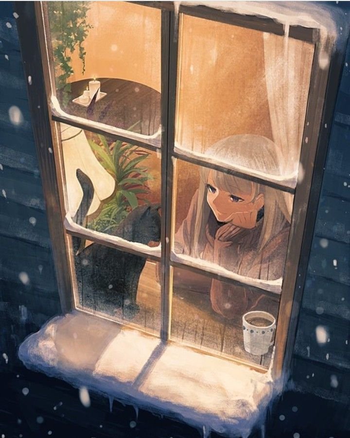 Иллюстрация eines Mädchens, das am Fenster лежит, während das Wetter stürmisch.