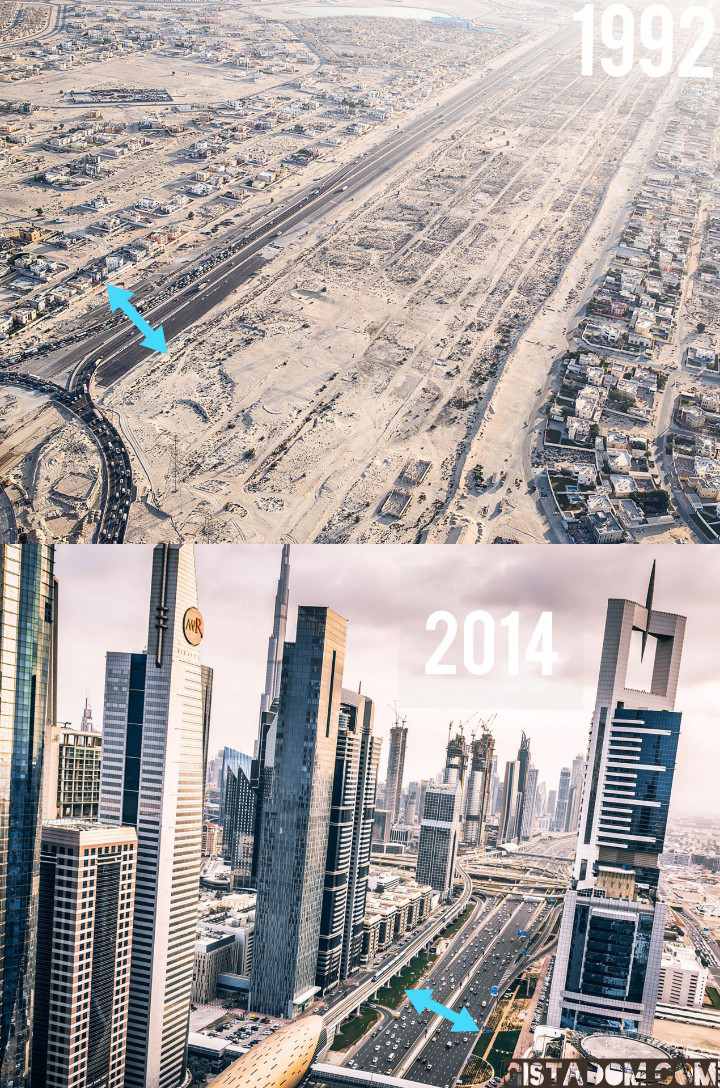 Пользователь Reddit Safwanish опубликовал изображение, которое еще лучше отражает этот безумный рост. На нем показано, как главная дорога Дубая, E-11, выглядела в 1990 году и как она выглядит сегодня.