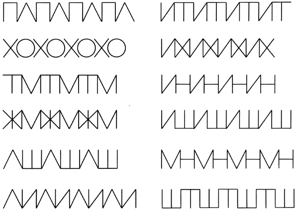 ⇐ ПредыдущаяСтр 5 из 22Следующая ⇒ Все элементы печатных форм подразделяются на изобразительные (печатающие) и пробельные. Изобразительные элементы при накатывании на них краски и совмещении с воспринимающей поверхностью передают изображение. Пробельные элементы создают пробелы между словами, строками, другие пробелы внутри наборной полосы и поля на странице издания. К печатающим или изобразительным элементам относятся: буквы алфавита, знаки, цифры, линейки, орнаменты, иллюстрации. Буквы, знаки, цифры условно расположены на кегельной площадке (Em-Square) А (рис. 5.1 ). Буквы состоят из следующих основных элементов: основных штрихов (Stem) (1), соединительных штрихов (Hairline) (2), засечек, серифов (Serif) 3, 4 различной формы. Расстояние (5, 6) между основными штрихами называется внутрибуквенным просветом (Counter). Капительные буквы имеют размеры строчных букв, а рисунок — прописных. В русском языке семь капительных букв: А, Б, Е, Р, С, У, Ф. Есть капительные буквы и в латинском алфавите. Они используются для выделений в тексте, чаще всего при формульном наборе. Линейки используются при наборе таблиц и формул как разделительный печатающий материал, в акцидентном наборе — для отделения и выделения. По начертанию очка линейки подразделяются на несколько видов (рис. 5.2 ). Орнаменты (украшения) используют при художественном оформлении книг и журналов, при акцидентном наборе. Орнаменты служат одновременно разделительными и декоративными элементами. Основным элементом наборного орнамента является раппорт (рис. Различное положение раппортов при наборе, разделение их пробельным материалом позволяет создавать наборные украшения разных видов. Графической основой наборных орнаментов является мотив, который может быть геометрическим (прямоугольным, линейным, полукруглым, круглым и др.) и более сложным. В зависимости от мотива, орнаменты объединяются в серии. Простые по рисунку орнаменты — в серии: «геометрические», «звездочки», «розетки» (рис. 5.4 ). Более сложные орнаменты — бордюры (рис. 5.5 ), комбинированные орнаменты и фоновые украшения. Серия содержит несколько гарнитур, различных по характеру, но выполненных в одном стиле. Гарнитура объединяет различные по начертанию орнаменты. Задача дизайнера состоит в том, чтобы построение орнаментных композиций носило закономерный характер и отдельные графические элементы орнамента были органически связаны между собой, особенно в стыковых местах (углах). Построение орнаментных композиций может быть ритмичным и аритмичным. Под ритмом в орнаментах подразумевается чередование графических элементов (единичных или комбинированных) в определенном порядке. Ритмичные построения могут быть простыми, если они состоят из одного или двух элементов, и сложными, состоящими из нескольких элементов. Аритмичные акцидентные орнаменты строятся по принципу равномерного заполнения выбранной плоскости бессистемно расставленными элементами, однако при этом должно выполняться следующее требование: разные элементы могут быть контрастными по форме и насыщенности, но иметь общий для всех ритм, замкнутый или диагональный. 6.2. Шрифты полиграфии Шрифт — рисунок букв алфавита какого-либо языка с относящимися к нему дополнительными знаками, цифрами, знаками препинания, расположенными на шрифтовом носителе вещественном (литере, шри