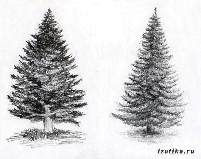 Чуть позже мы рассмотрим, как рисовать лиственные деревья карандашом.
