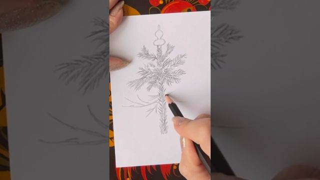 При рисовании елки приходится применять штриховку. Дальние деревья, в которых нельзя разобрать деталей, можно покрывать простым штрихом, самые дальние — вертикальными штрихами. Каждый такой штрих должен как бы подчеркивать характер высоких и сравнительно узких деревьев.