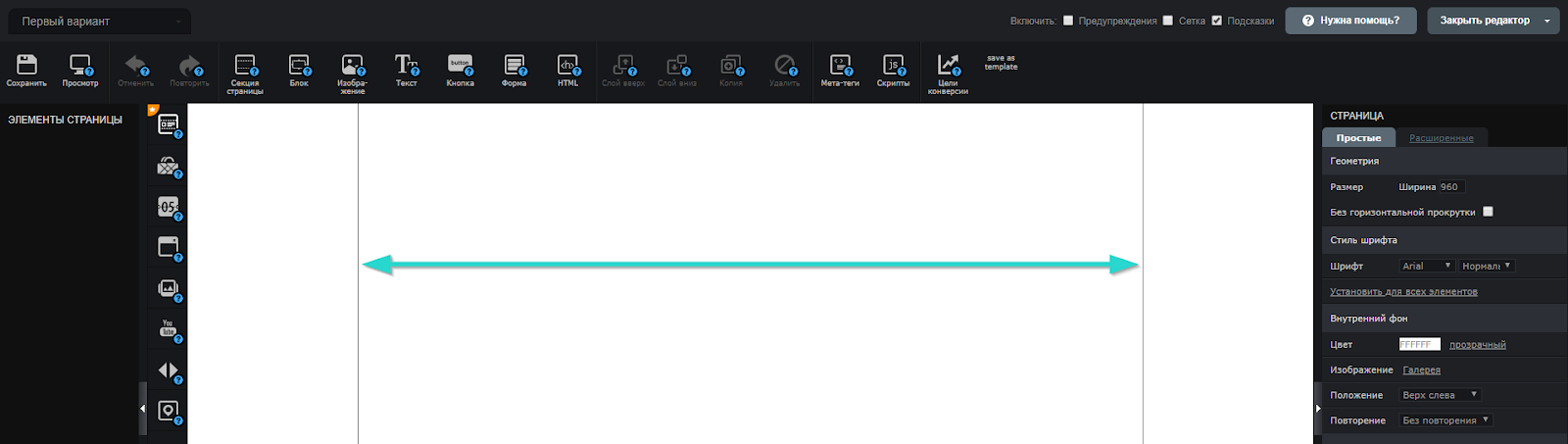 Если горизонтальная полоса прокрутки все еще сохраняется, вы можете добавить пользовательский код CSS на страницу (Настройки → Дополнительные настройки → Пользовательский CSS):