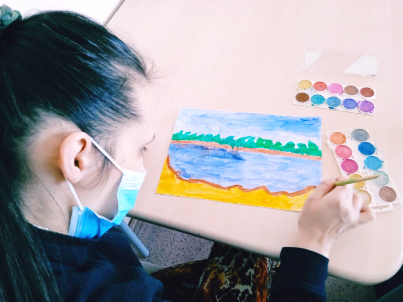 Учащиеся смешивают краски, чтобы получить промежуточные цвета. Студенты будут