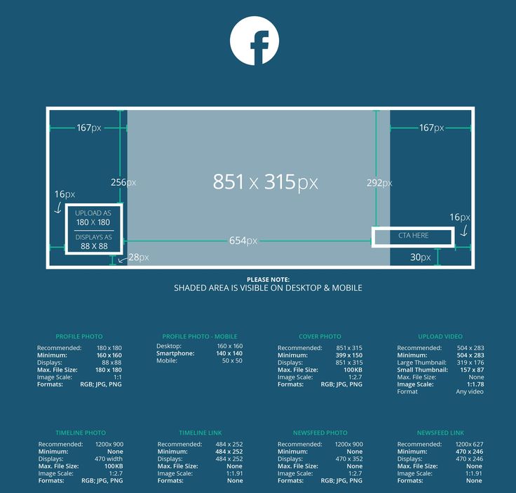 Идеальный размер обложки Facebook «Шпаргалка»Благодаря экспертному совету Луизы Майерс мы подготовили обновленную (по состоянию на апрель 2016 г.) «шпаргалку» по оптимальным размерам фотографий Facebook: