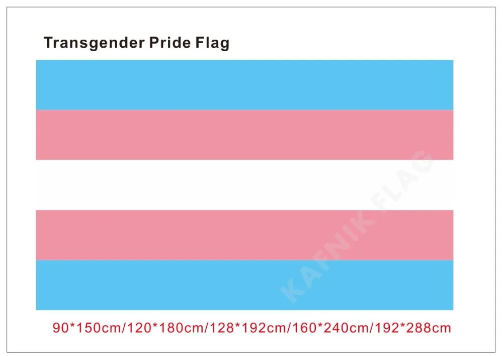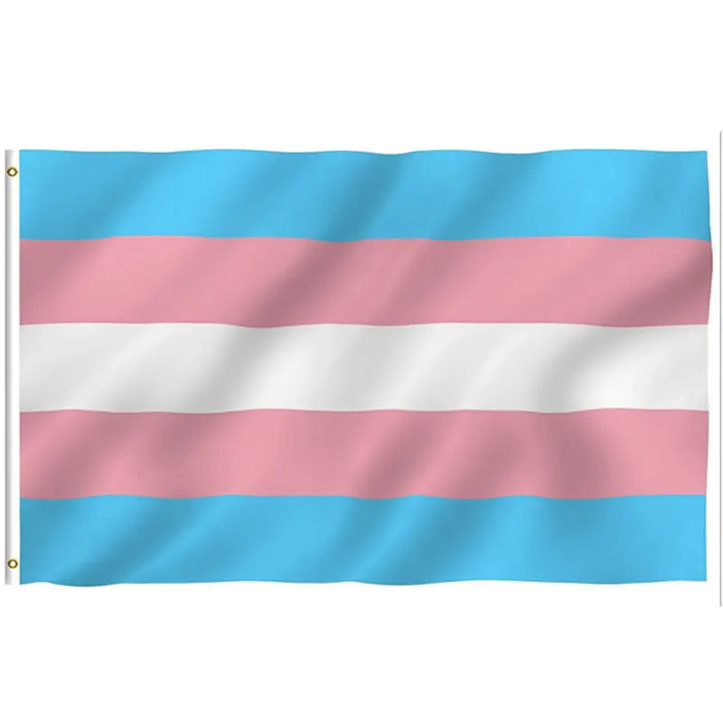 Флаг впервые был поднят на параде гордости в Фениксе в 2000 году. Голубой цвет представляет мальчиков, а розовый — девочек. Белый цвет используется для обозначения тех, кто переходит, тех, кто считает, что у них нейтральный пол или не имеет пола, и тех, кто интерсексуален. Шаблон был выбран стратегически, так что независимо от того, как вы поднимаете флаг, он всегда будет правильным. Хелмс выбрал эту ориентацию, чтобы символизировать тех, кто пытается найти правильность в своей жизни.