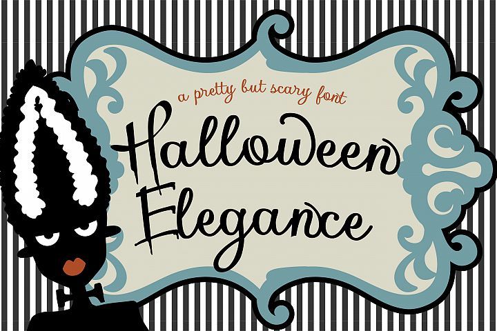 Подходит для чего угодно, от создания логотипа до использования его для заголовков, Histeria Horror — это то, что вам нужно, если у вас есть приглашение на вечеринку в стиле метал-группы на Хэллоуин, но, как показывает пример шаблона, он хорошо работает даже с более легкими тематическими вечеринками. Именно этот шрифт своими длинными штрихами напоминает мне косу, так что вполне подходит для хэллоуинских публикаций, особенно если вас больше тянет на темную сторону.