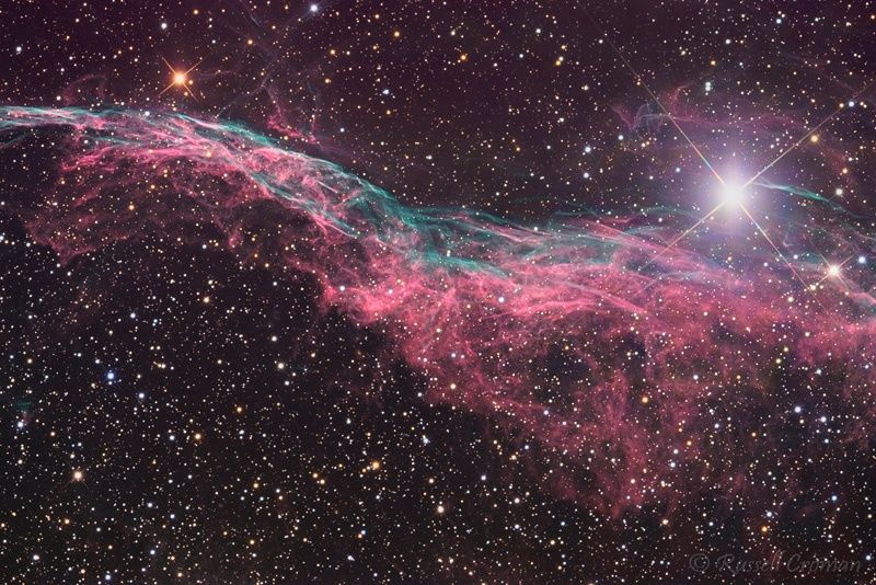 Поменяйте режим наложения для слоя с туманностью на Линейный осветлитель (Linear Dodge), Непрозрачность слоя 100%: