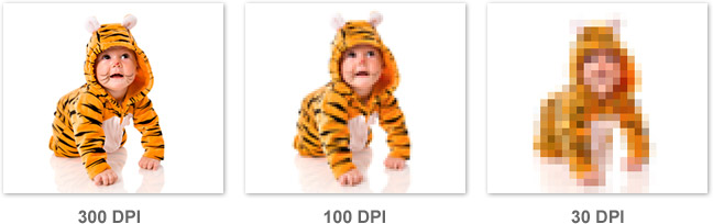 Печатные устройства имеют вертикальное и горизонтальное направление разрешения печати. Стандартный размер и количество точек — 300 dpi. Это значит, что на 1 дюйм (2,54 см) размещается 300 пикселей. При печати с разрешением в 300 dpi используется 300×300 точек на один квадратный дюйм.