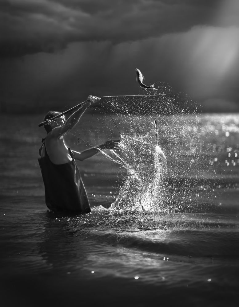 Здесь снова солнце стояло довольно высоко и отражалось в воде. У меня не было много ракурсов, чтобы сделать хороший снимок. Я решил встать так, чтобы солнце падало на спортсменку со спины, чтобы получить эффект силуэта на фоне выделенной воды. Интересно, что ее белая кепка идеально ложится на линию темного берега. Это была вишенка на торте! Я мог бы сказать, что все это было запланировано, но…;)2. Редактирование вашего черно-белого изображения