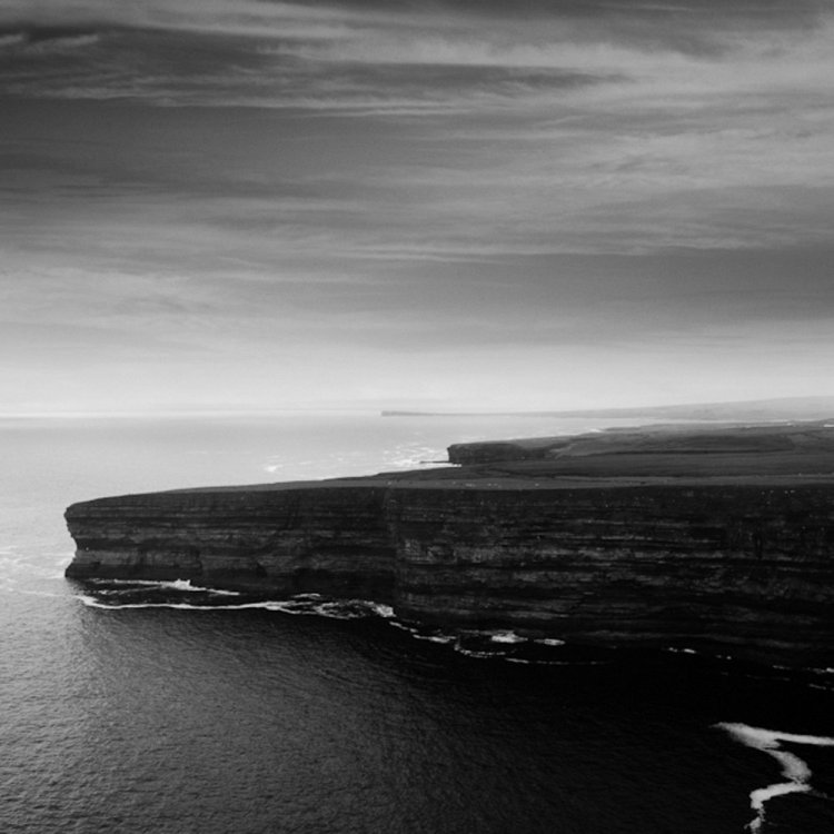 Атмосфера, которую создают туман и гладкая поверхность воды возле мыса Килнотон на острове Айлей, усиливается за счет черно-белого формата.