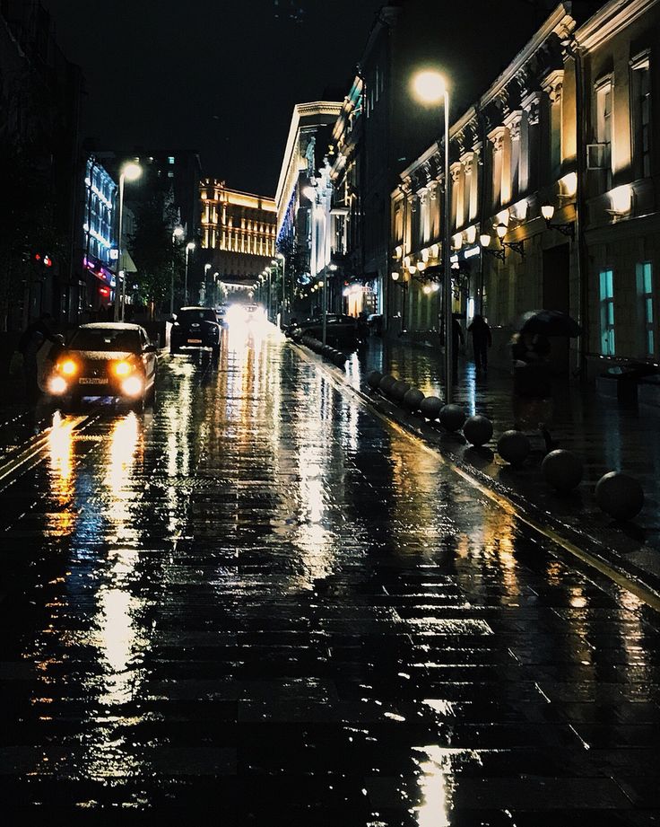 Отражения. Во время и сразу после дождя весь мир вокруг начинает влажно блестеть и превращается в одно большое зеркало. Особенно это касается съёмок в городе. Особенно вечером. При съёмках ночных сцен в кино асфальт часто специально поливают водой, чтобы дорога из невыразительной серой массы, просто занимающей место в кадре, превращалась в блестящую полосу, добавляющую объём.