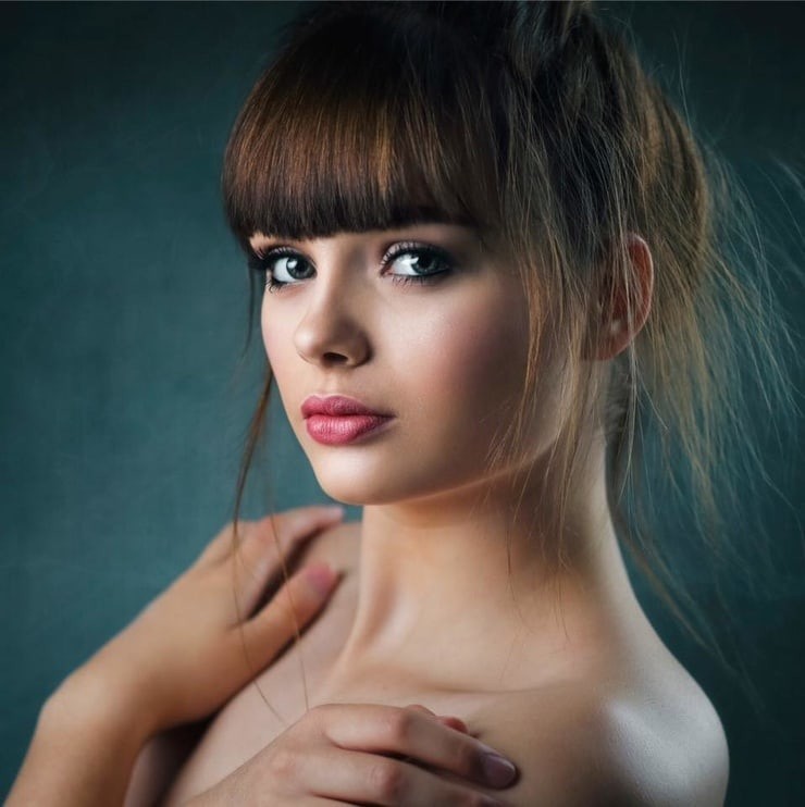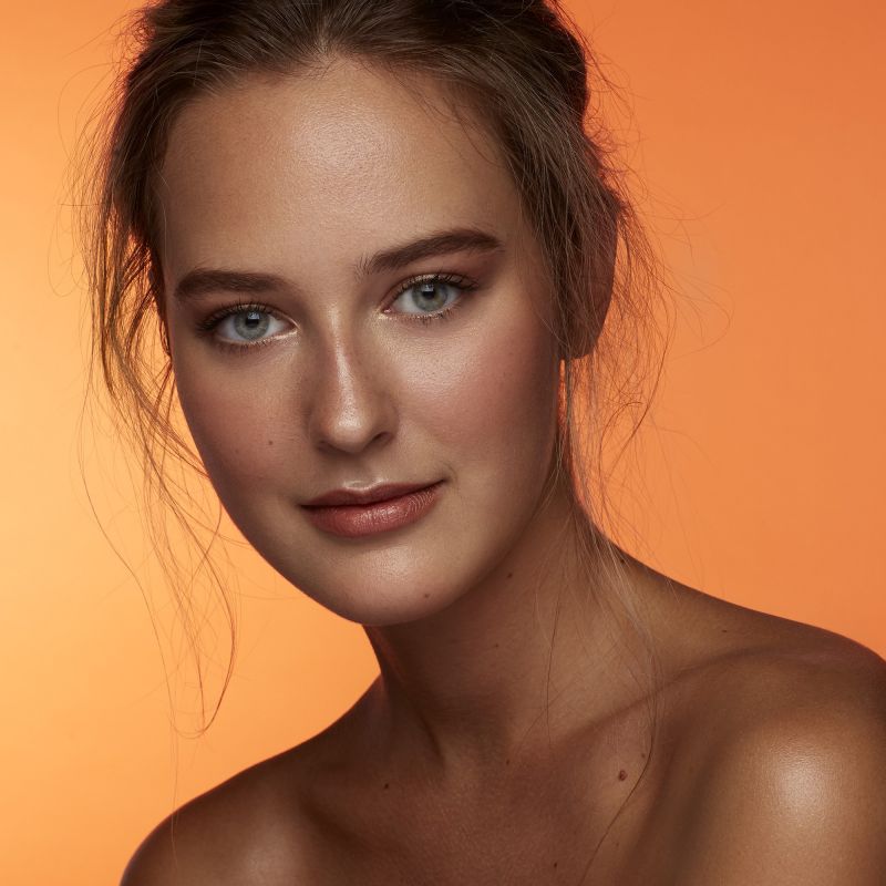 Студийный свет: Лицо ярко освещено, и в целом фотография выглядит чистой.
