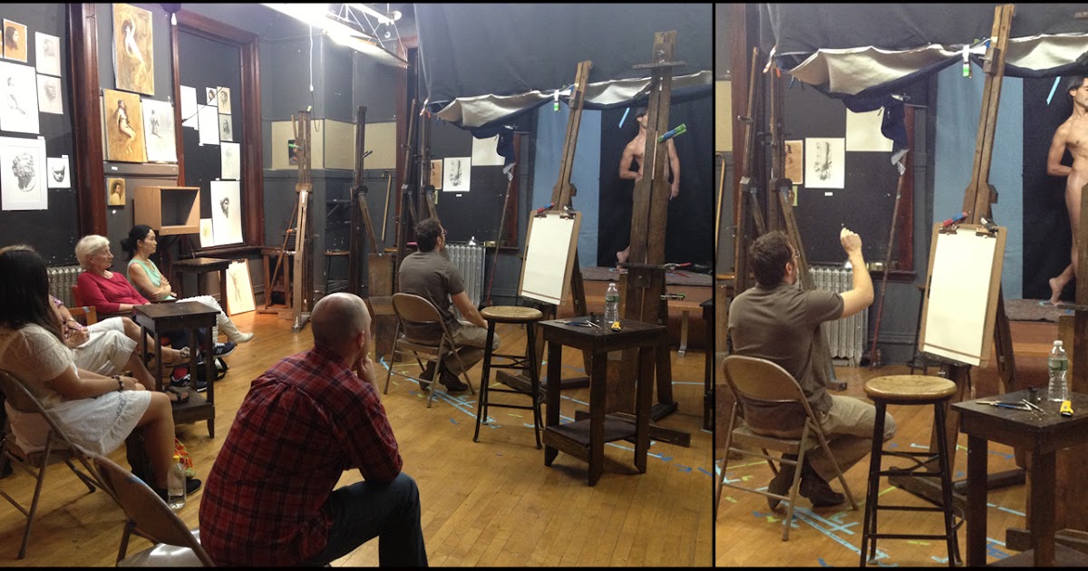 Голый парень позирует художницам