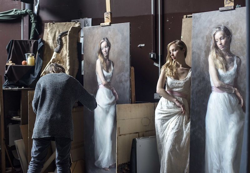 Девушка позирует для художника