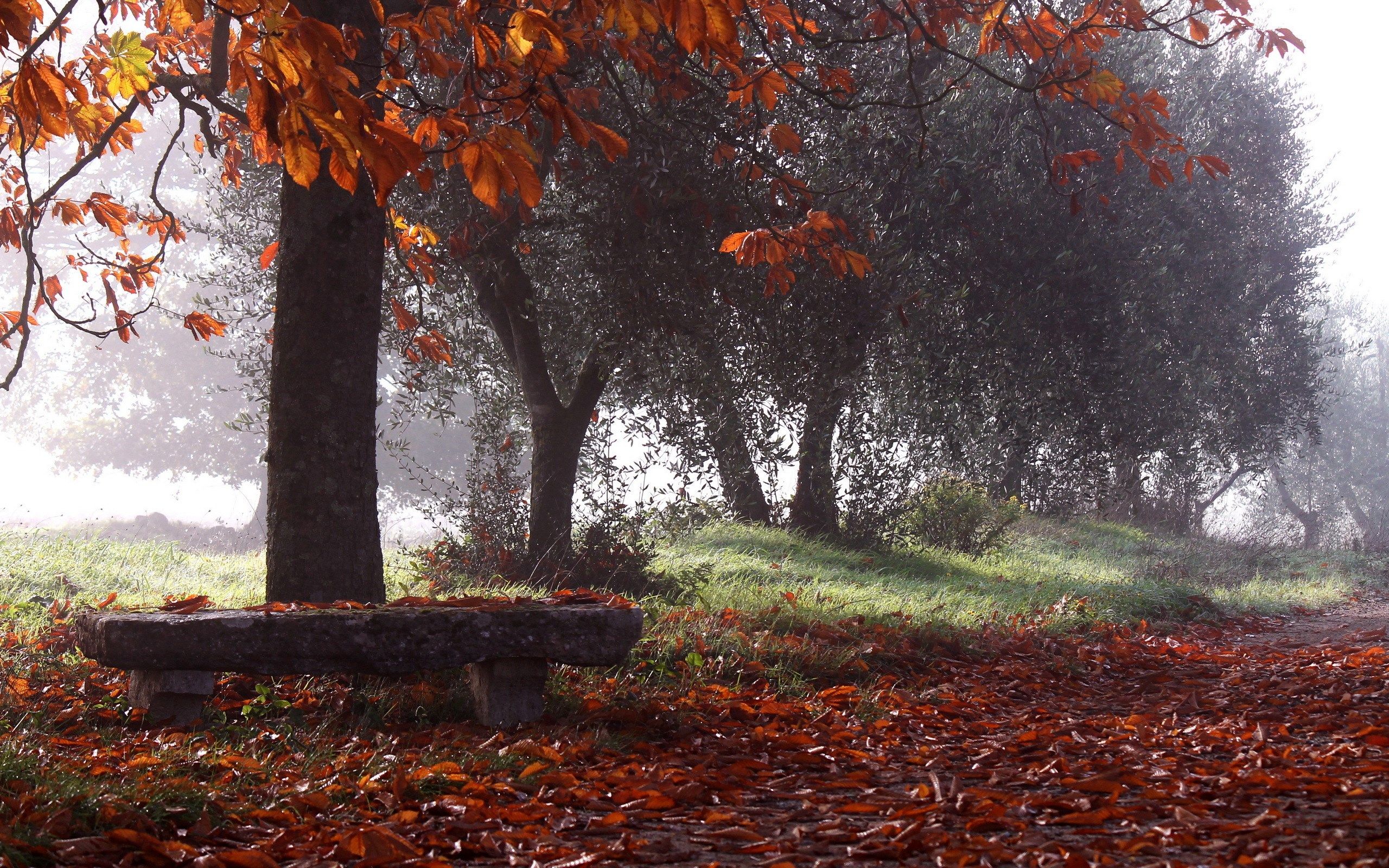 США дорога, осень, дождь, туман, листва, лес, деревья, свет, HD обои- USA