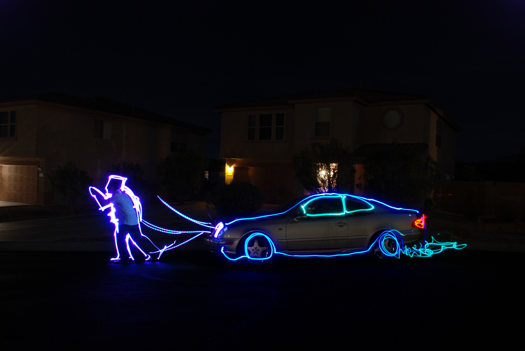 Найти хороший объект для световой живописи легко — вы можете эффективно обвести светом любую четко очерченную форму, но велосипеды, телефонные будки и автомобили работают особенно хорошо. Вы также можете дать волю своему внутреннему Пикассо и попробовать «рисовать» в воздухе, используя плавные кривые или зубчатые линии.
