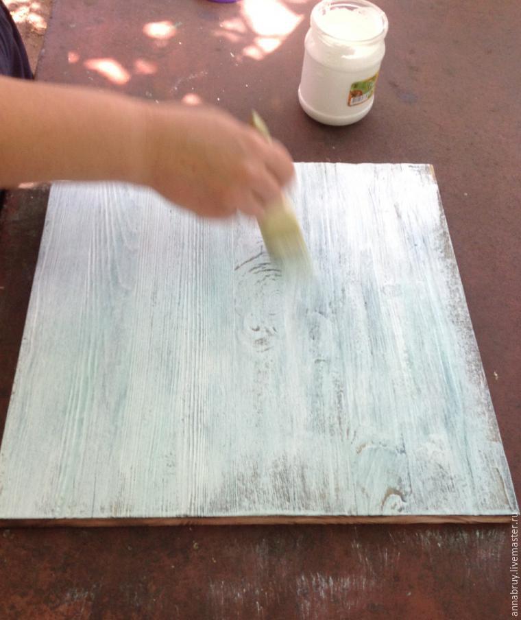Пока у меня приклеивался пол, я выявила фактуру у стены фона — серой краской, прокрашивала почти сухой кистью.