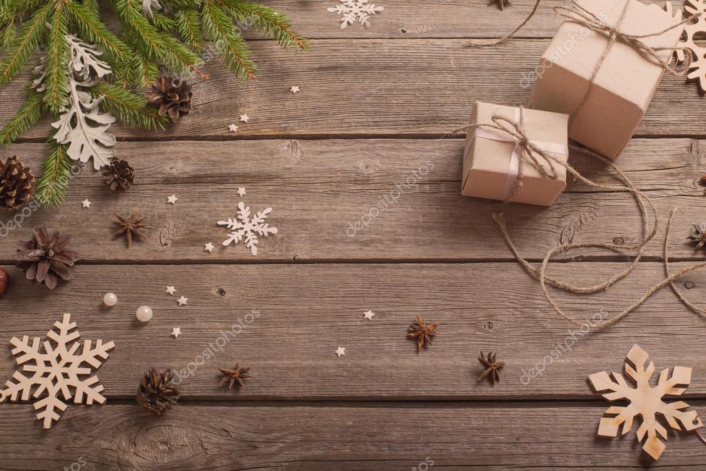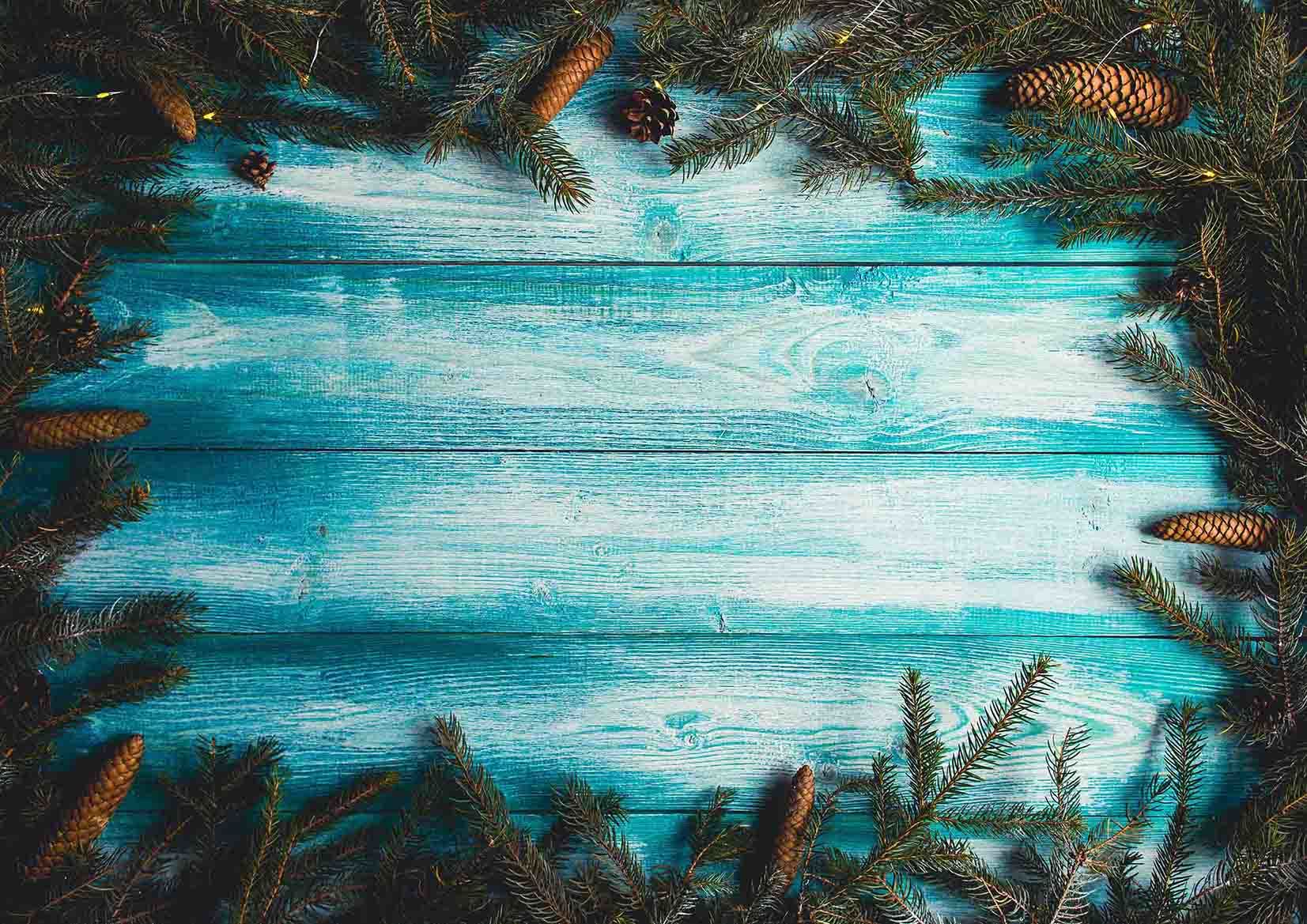 Christmas Party Wooden Board Snowflakes Pine Branch Photography Backdr – dreamybackdrop