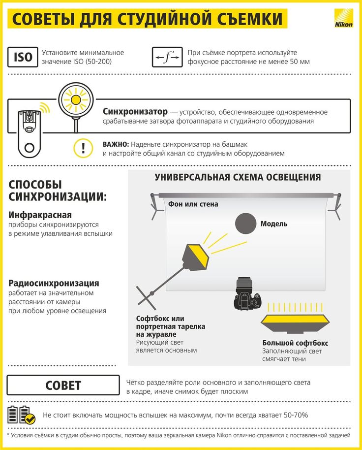 Кроме того, обязательно включайте пилотный свет — он будет показывать, как и где будут ложиться тени, когда вы начнёте фотографировать.