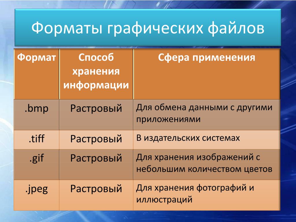 Существует множество различных форматов файлов, поскольку изображения можно использовать по-разному. Есть также много способов отображения изображений. Каждый формат файла может иметь преимущество, которое делает его более предпочтительным для определенного проекта. У него также может быть недостаток, который делает его менее желательным для проекта.
