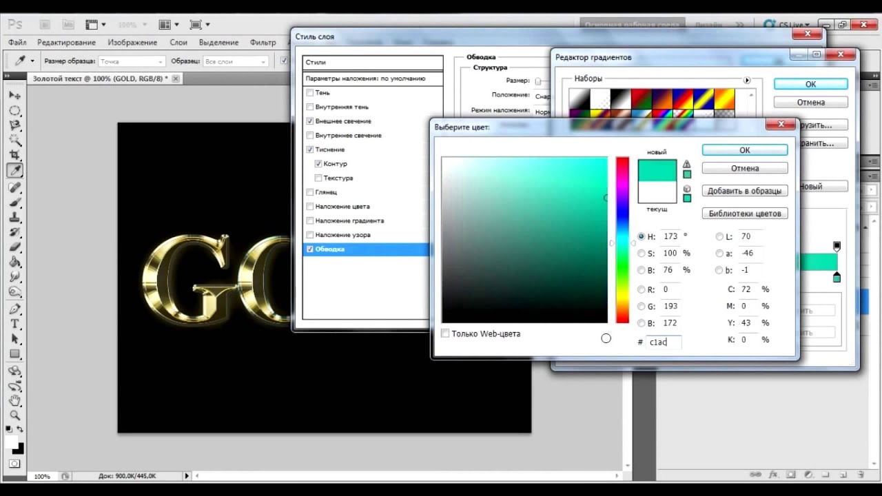 Пишем золотыми буквами в фотошоп. Как сделать золотой цвет в фотошопе