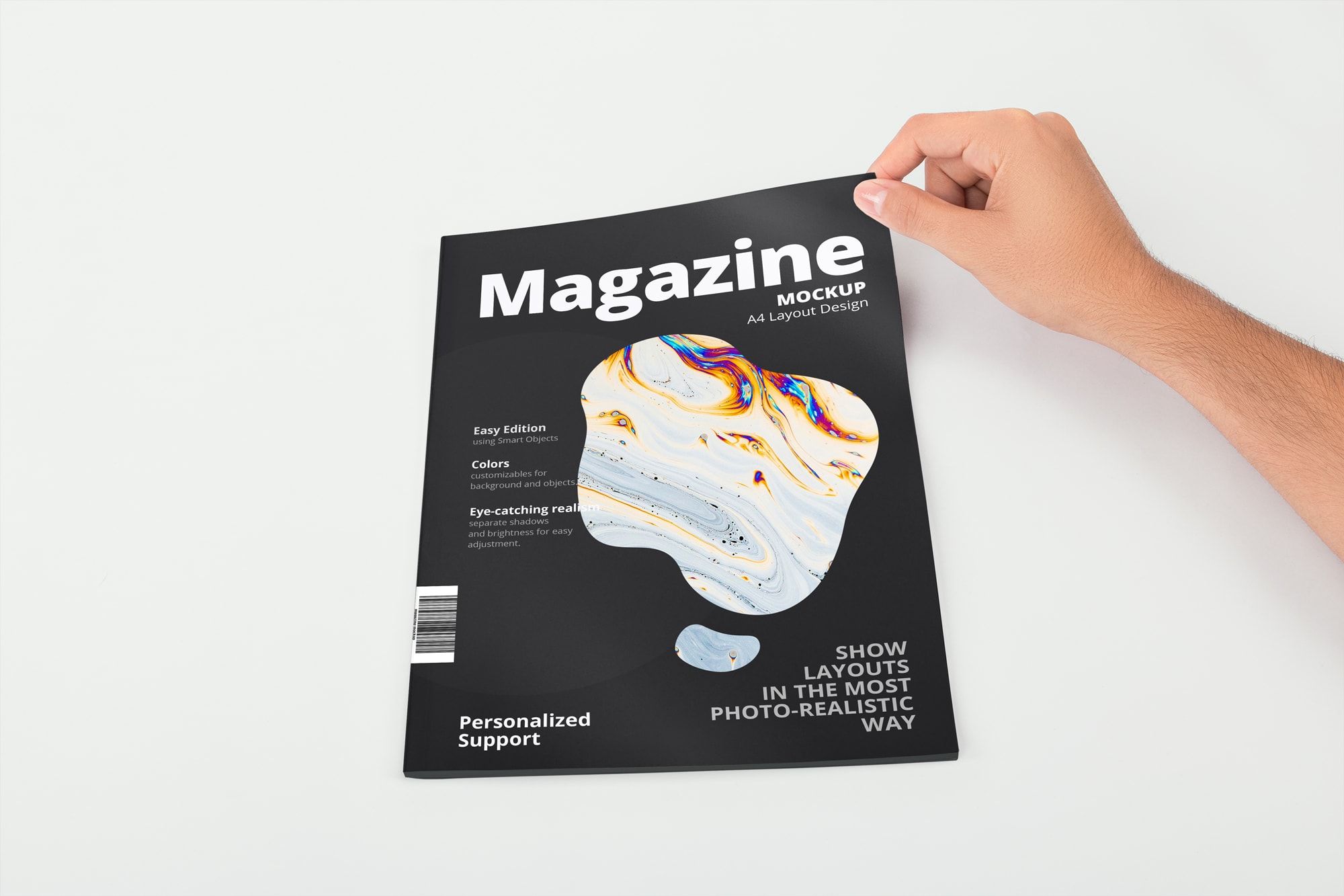 Название говорит само за себя, это макет журнала формата А4, который идеально подходит для искусства и дизайна, но вы можете использовать его и в других отраслях.
