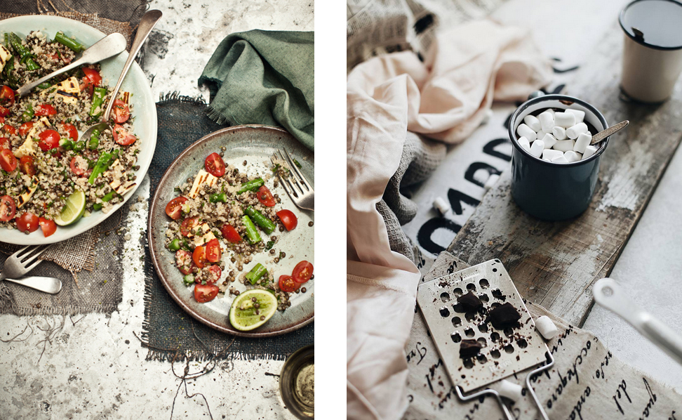 Еще один способ рассказать историю — посуда и посуда. Я часто оставляю пустую/грязную посуду на снимке, потому что считаю, что это помогает рассказать историю и добавляет в кадр очаровательный оттенок несовершенства.