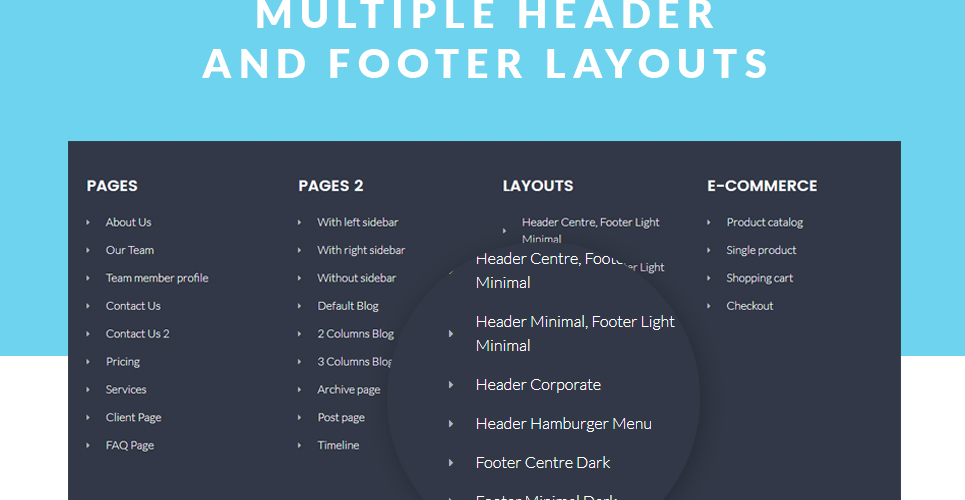 Elementor editor gives you the flexibility to design beautiful sections. Using it you can create out of the box header and footer designs.