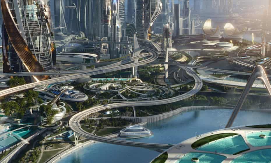 — футуристический сток-график, -клипарт, -мультфильмы и -символFuture Cityscape Perspektivansicht, Futuristische…