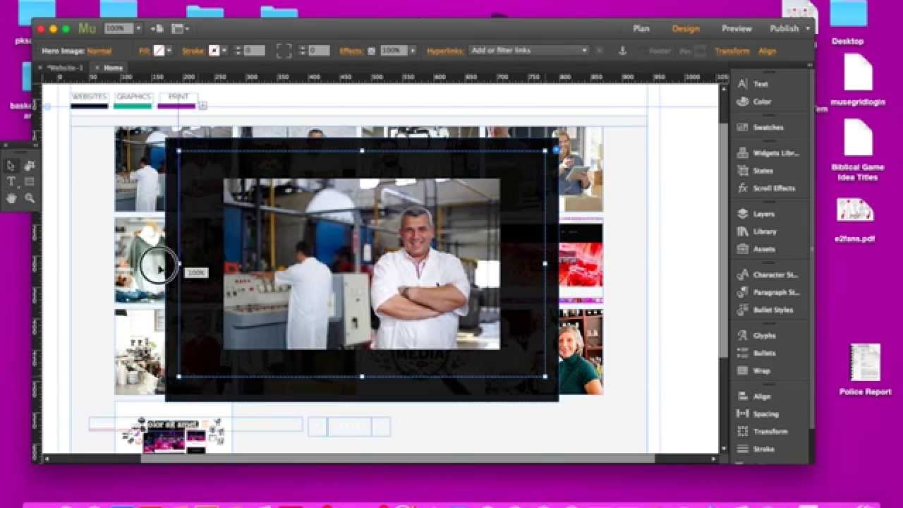 - В Adobe Muse выберите «Окно» > «Преобразовать».